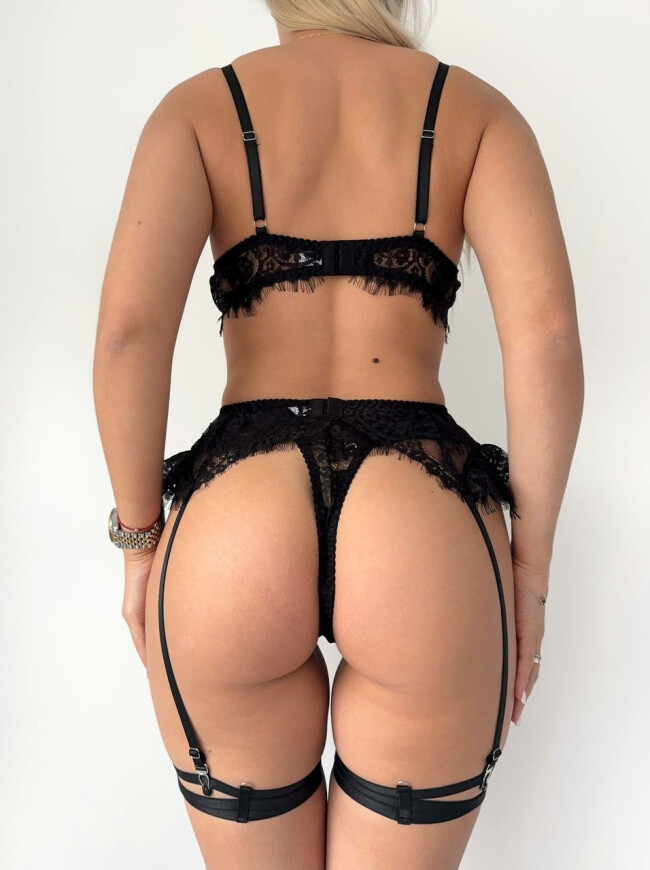 Мереживний комплект білизни з поясом та гартерами — витонченість, що підкреслює кожен рух.