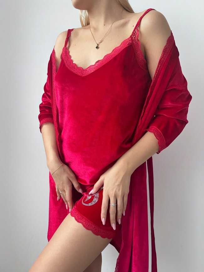 Жіноча піжама у стилі VS з халатом — розкіш і комфорт в одному образі.
