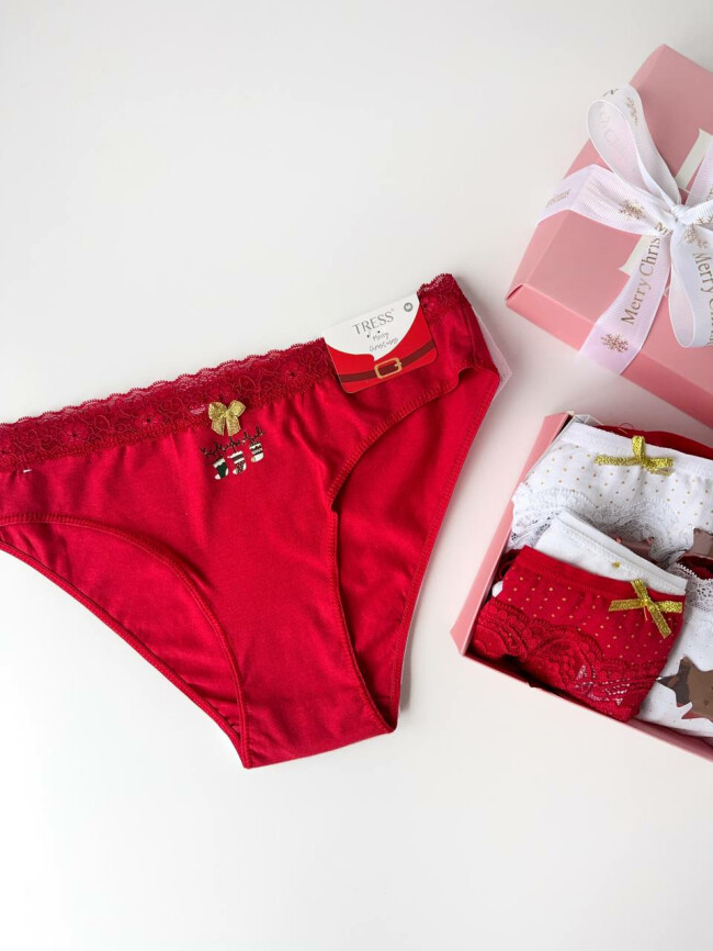 У наборі — дві пари трусиків із натуральної бавовни, прикрашені милими новорічними принтами, які створюють відчуття затишку та радості.